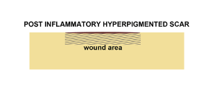 Hypotrophic scars appear sunken, formed a depression below the skin level